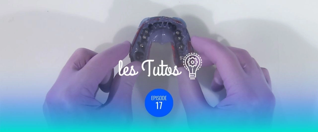 Après mise en place de l'adhésif sur un porte-empreinte individualisé (PEI) avec réservoirs, du polyéther est utilisé sur les zones implantaires. Le PEI est ensuite inséré en bouche pour permettre la réalisation d'une empreinte au plâtre à l'aide d'une seringue, afin de réaliser la clé de situation. Les analogues sont ensuite vissés sur la double empreinte ainsi obtenue.